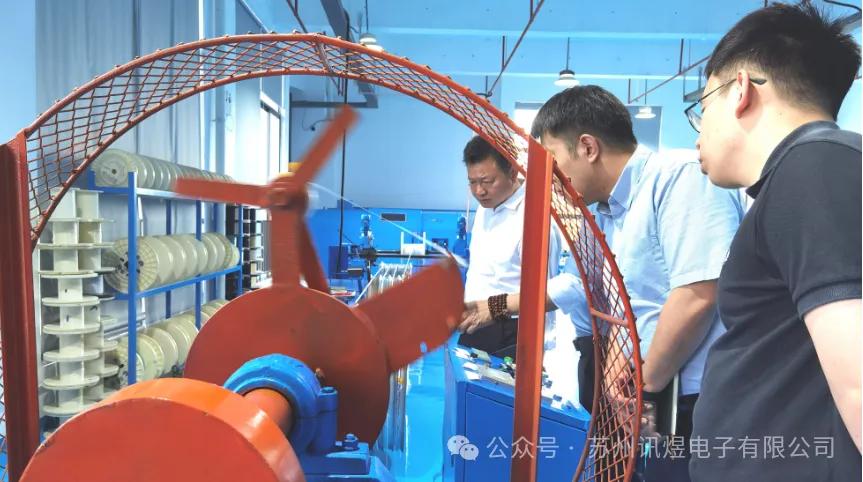 2024年6月3日下午,吳江經濟技術開發(fā)區(qū)管委會副主任朱云根一行蒞臨訊煜電子參觀指導,朱主任先后參觀了訊煜電子的線束集成車間、線纜生產車間和百級無塵拖鏈生產車間,每到一處都會仔細詢問,了解產品的特點、優(yōu)勢以及應用前景。