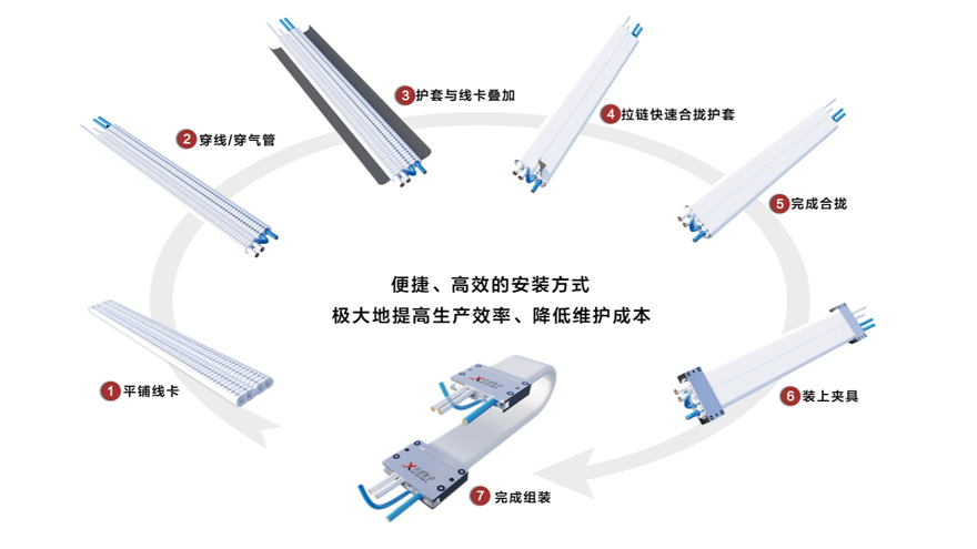 訊煜開放易安裝式無塵拖鏈(第3代屏蔽款無塵拖鏈)是一種滿足無塵環(huán)境下線纜防護(hù)及運(yùn)動(dòng)需求的產(chǎn)品,拖鏈自帶屏蔽抗干擾功能(內(nèi)層采用納米屏蔽材料,吸收拖鏈內(nèi)部線纜EMI竄擾)。易安裝式優(yōu)于封閉式拖鏈結(jié)構(gòu),外層護(hù)套采用拉鏈開口式結(jié)構(gòu),便于線纜的安裝和更換。中間線纜由柔性線卡分隔和固定,提高線纜排布的速度和美觀度,同時(shí)減少線纜絕緣層的磨損,延長線纜的使用壽命。支持多層疊加,支持龍骨支撐,滿足長行程應(yīng)用場景。
